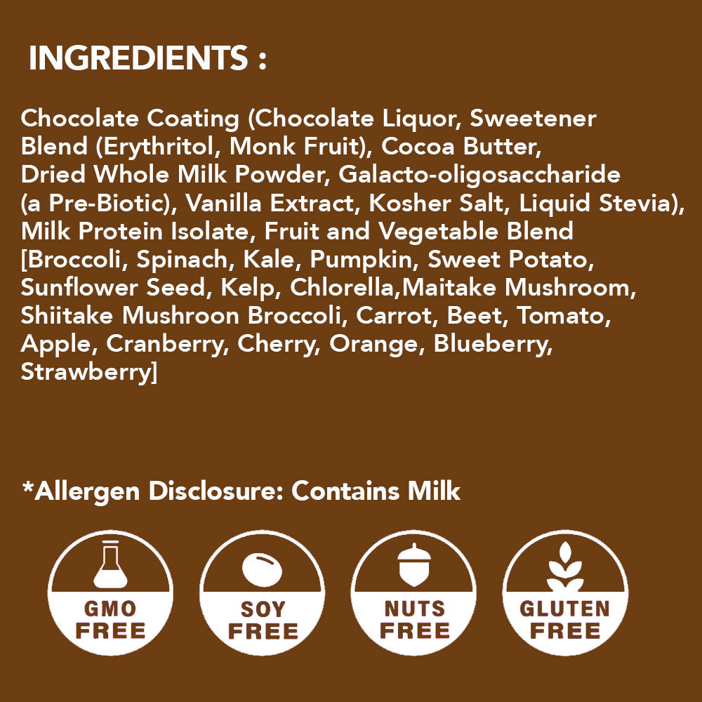 Our snacks use a vegetable blend that provide 25% of your daily vitamins and have the nutritional equivalence of 2 servings of fruits and vegetables per serving.