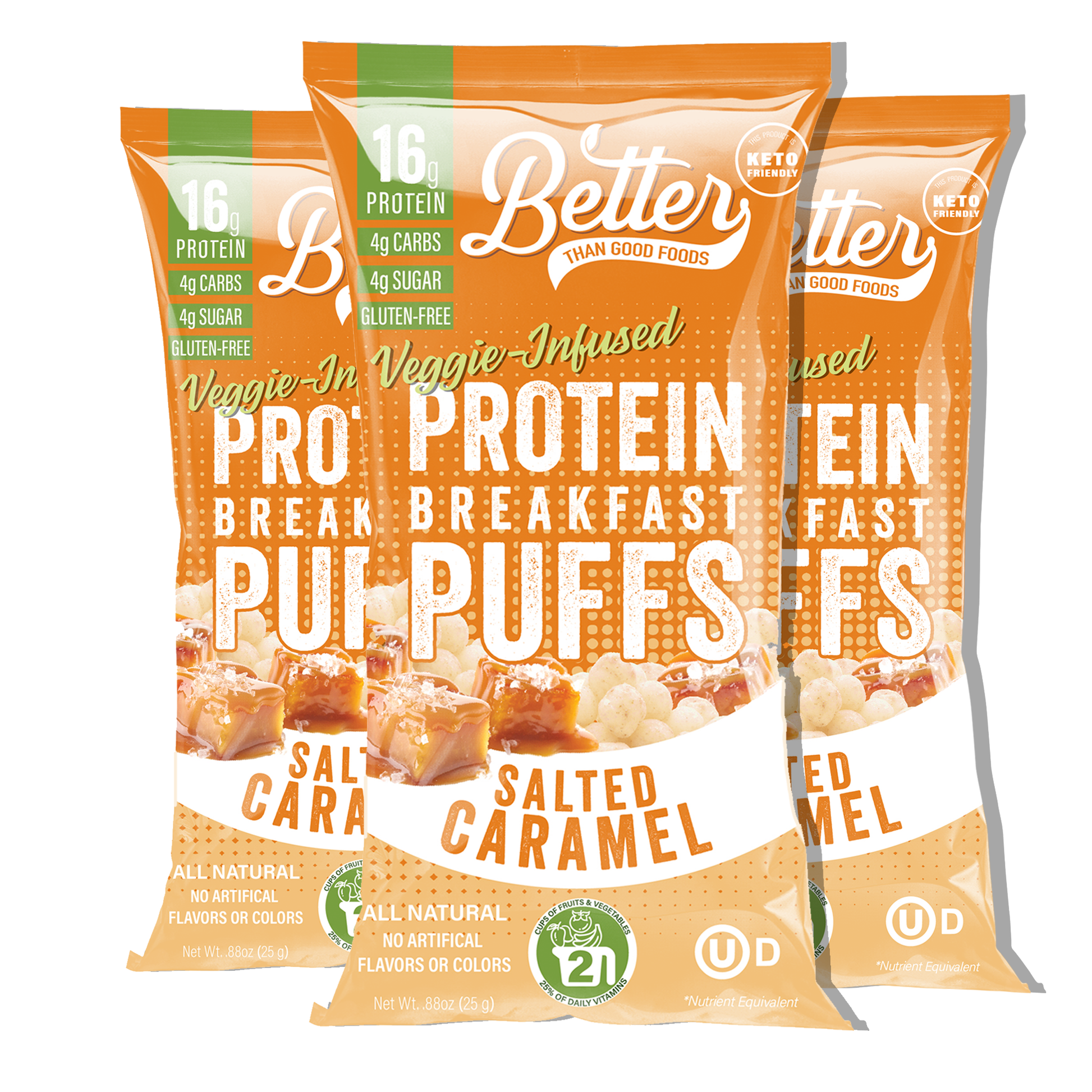 Our snacks are high in protein. The high level of protein creates a hunger curbing effect that allows you to feel full faster.